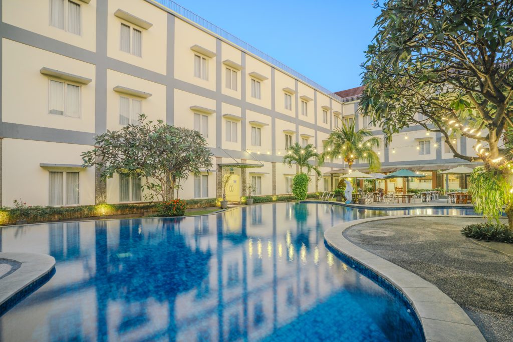 | Fasilitas Kamar Hotel | Wi-Fi gratis, AC, TV LED, kamar bersih & wangi, pemandangan kota (beberapa kamar), sarapan, kolam renang, restoran, layanan kamar, layanan binatu, pusat bisnis, ruang meeting, bathroom, check-in/out cepat, fasilitas konferensi, area bebas rokok,single/twin bed |